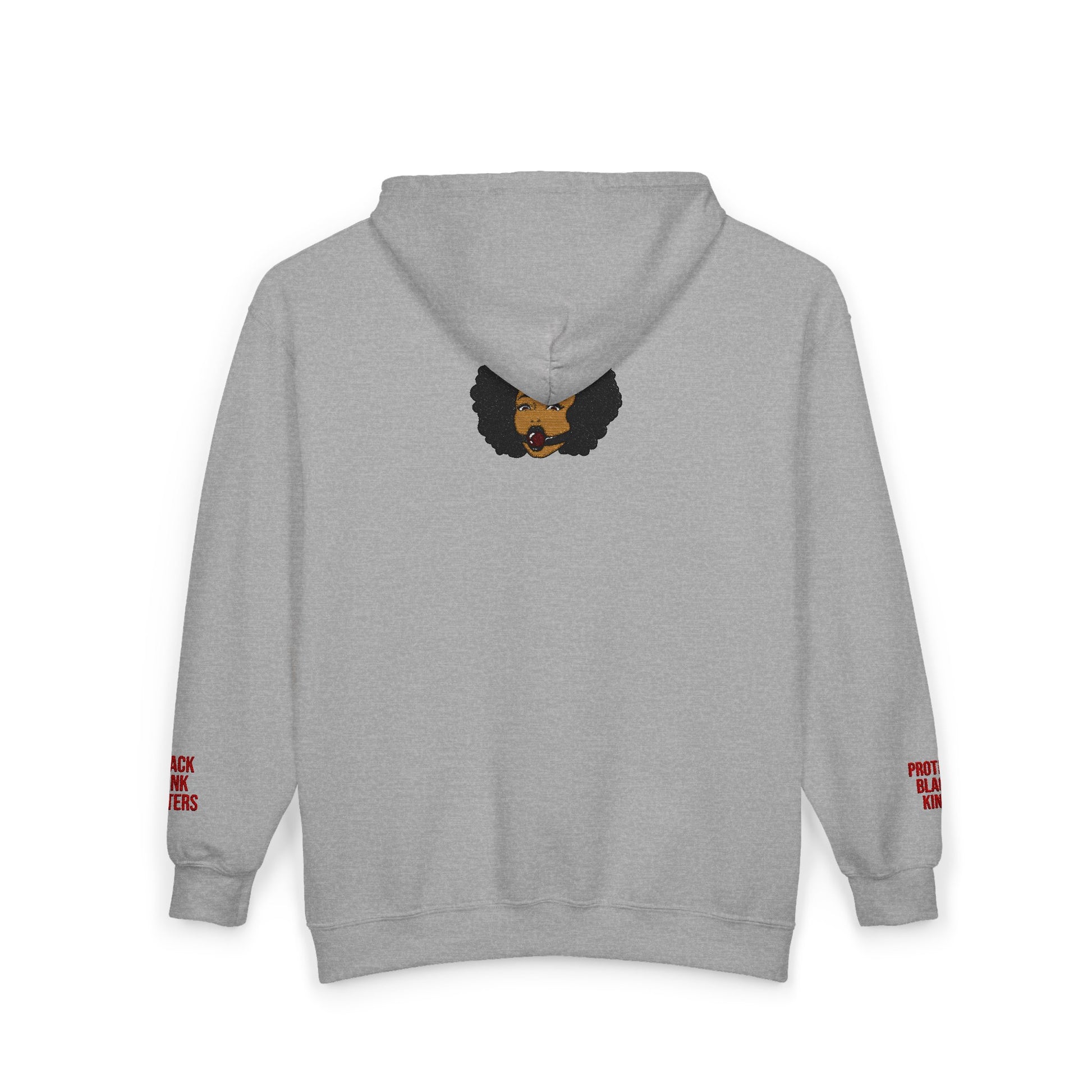 A soft, mid-weight zip hoodie that blends everyday comfort with quiet, expressive style. The classic fit and medium-heavy 50/50 cotton-poly fabric feel familiar and sturdy, while the tubular knit construction keeps the silhouette clean. Subtle chest embroidery and bold wrist prints add personality without shouting. Wear it zipped up for an easy layer on cool mornings, or open over a tee when you need movement and breathability. The roomy pockets hold phone, keys, and small essentials; the adjustable hood keeps wind off your neck. This hoodie carries an understated, soulful vibe — a cozy companion for slow afternoons, late-night studio sessions, or city walks where small details matter.