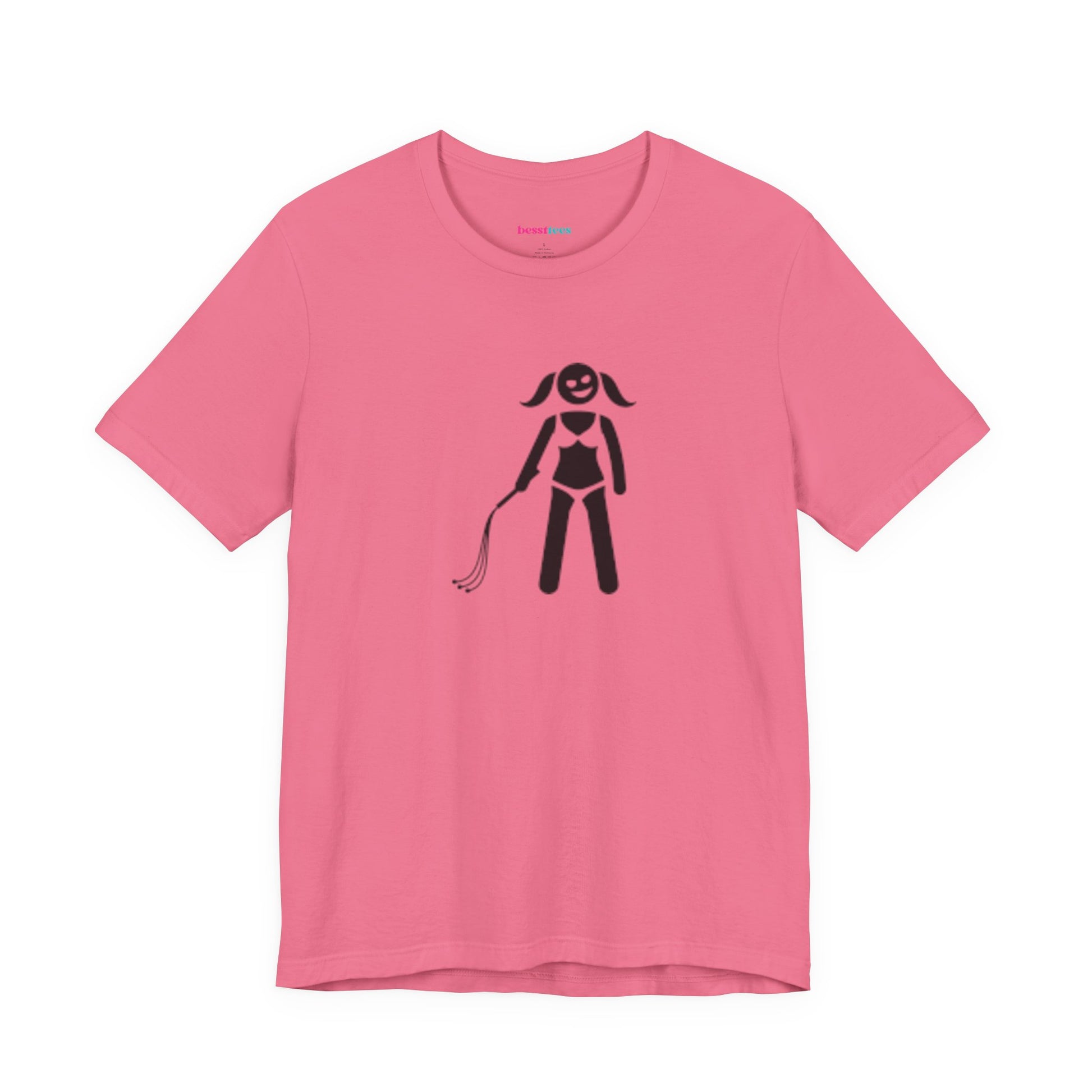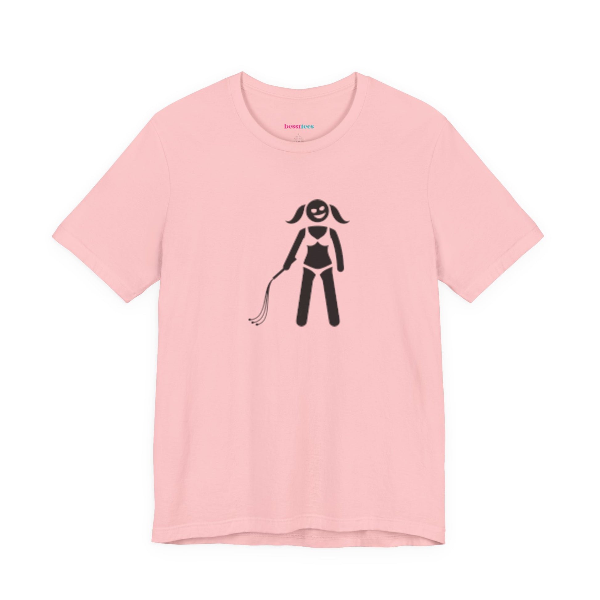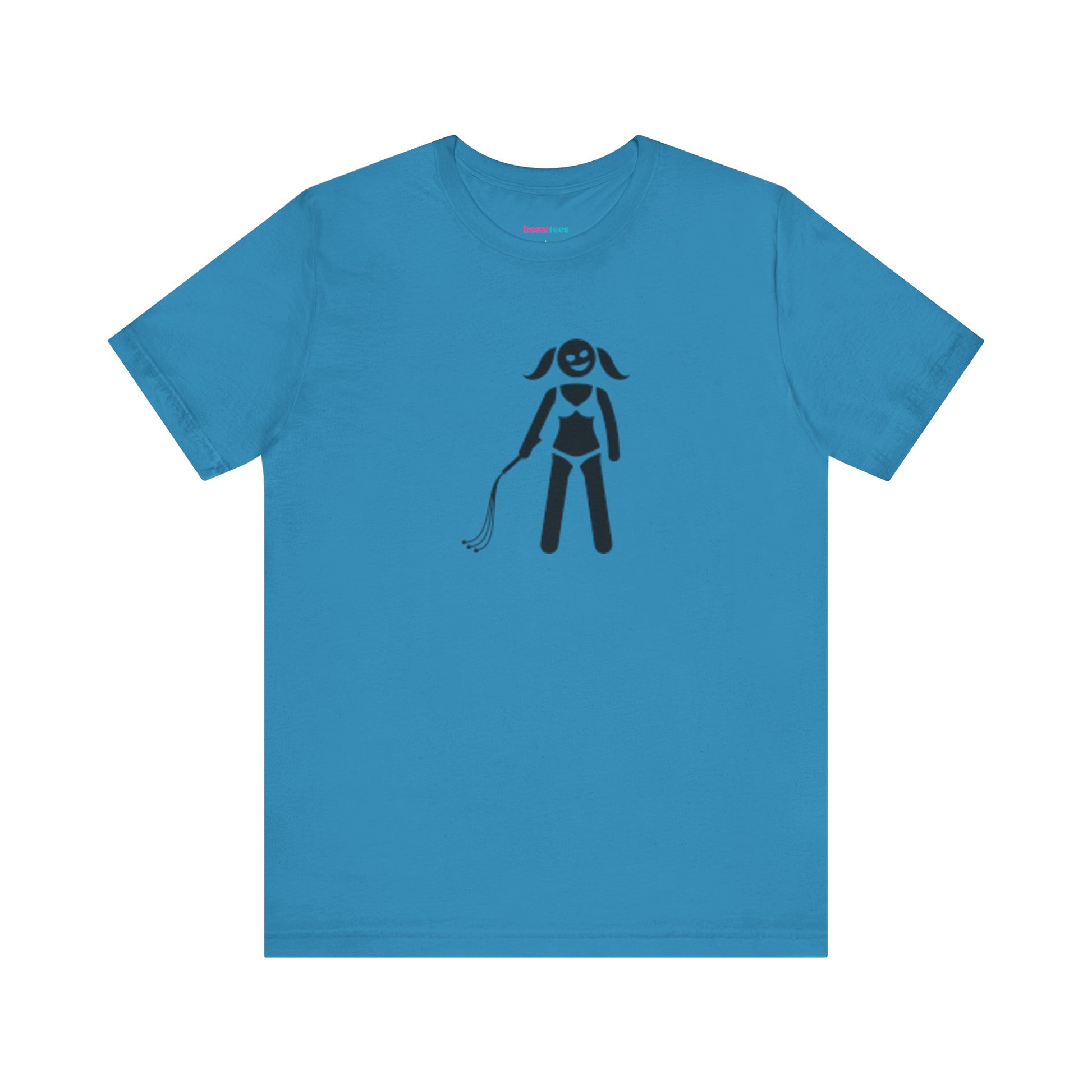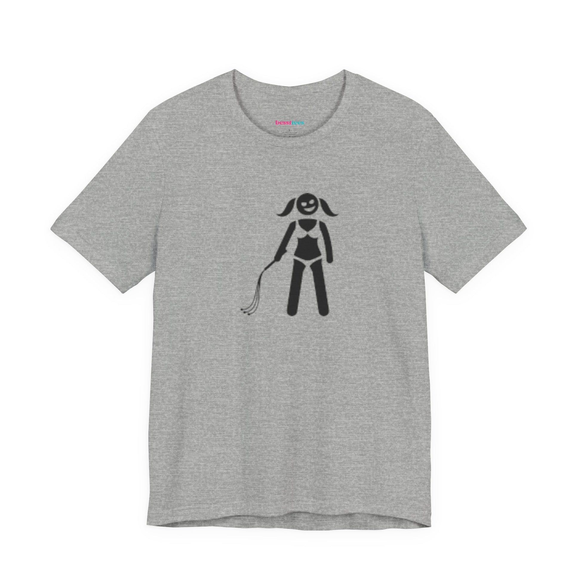 Turn heads and spark conversations with this cheeky Dominatrix Icon Tee. Featuring a bold stick-figure graphic holding a whip, this shirt brings humor, edge, and empowerment into one unforgettable design. Perfect for those who love to express themselves with confidence and a wink of rebellion.