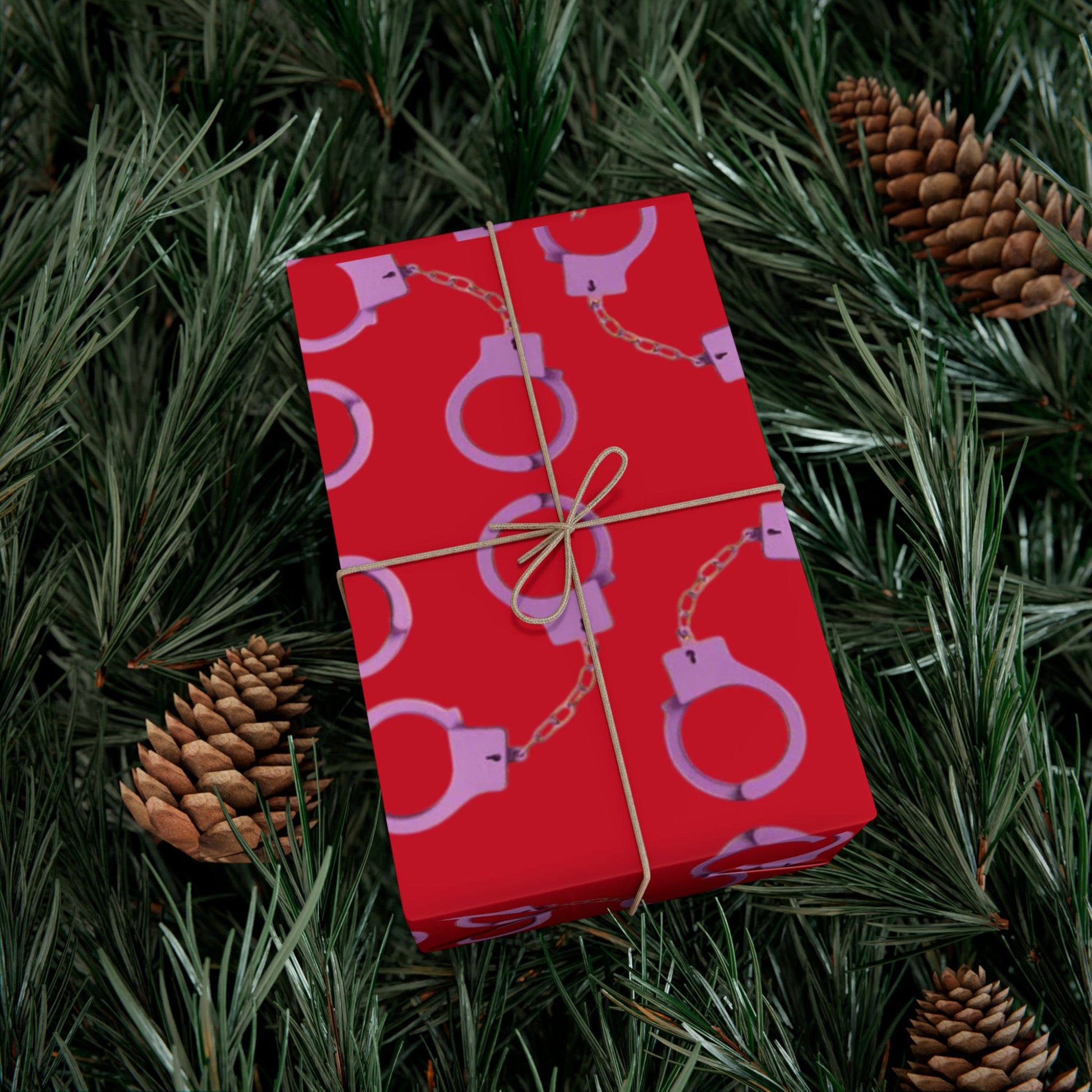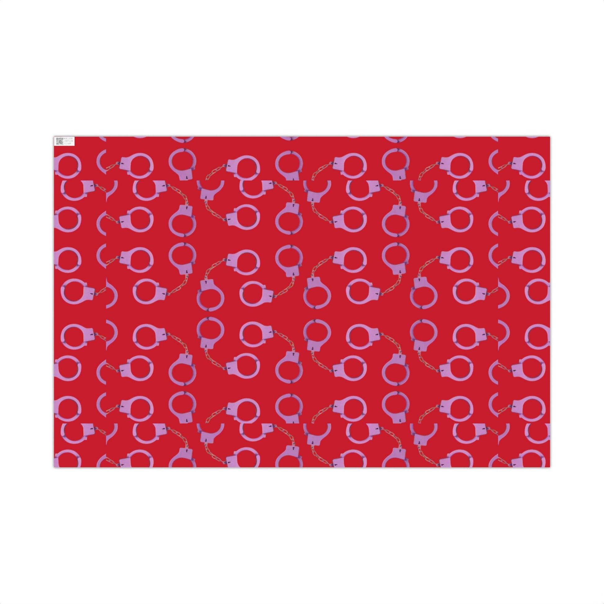 Handcuff Pattern Gift Wrap Paper — Red Novelty Wrapping for Bachelorette, Gag Gifts & Parties