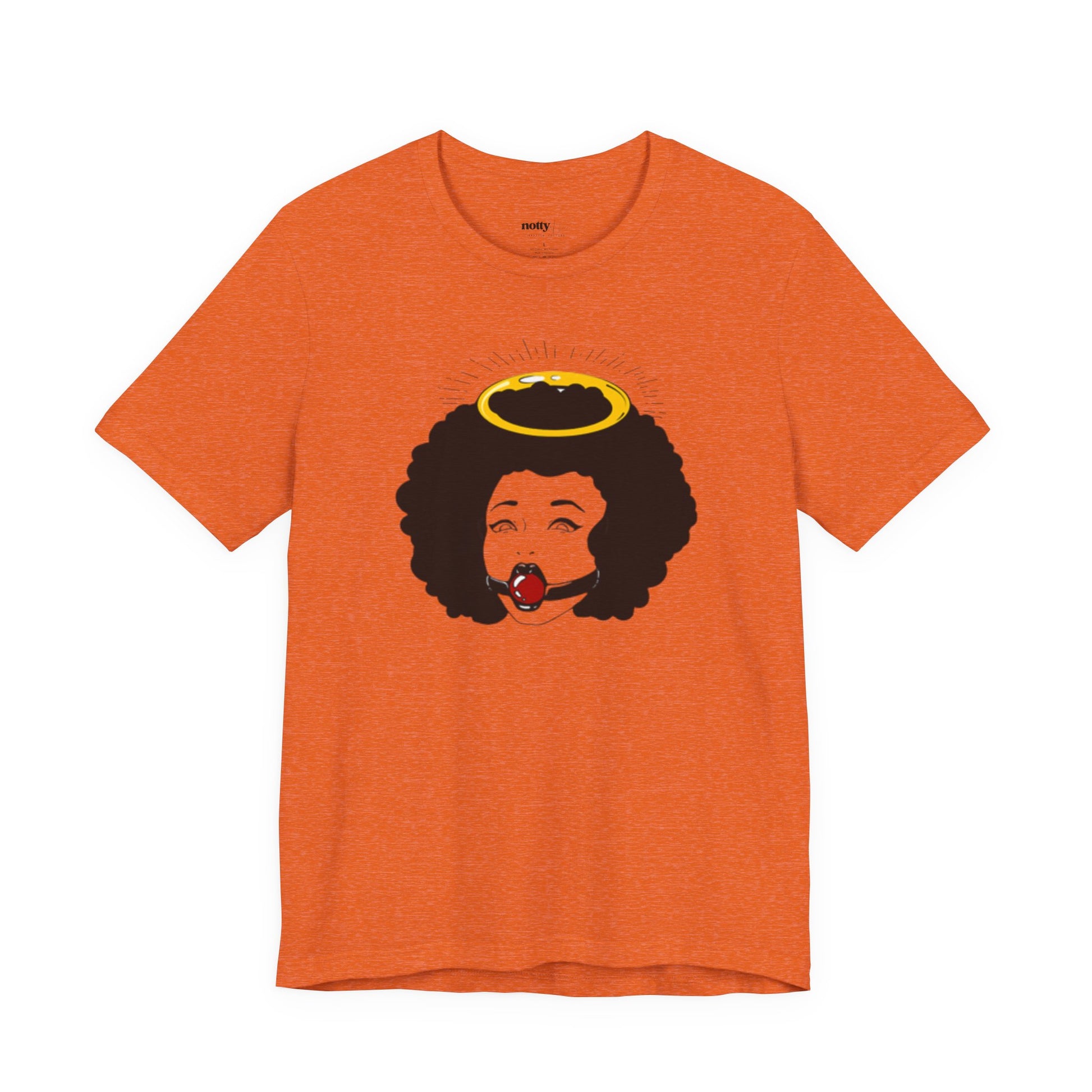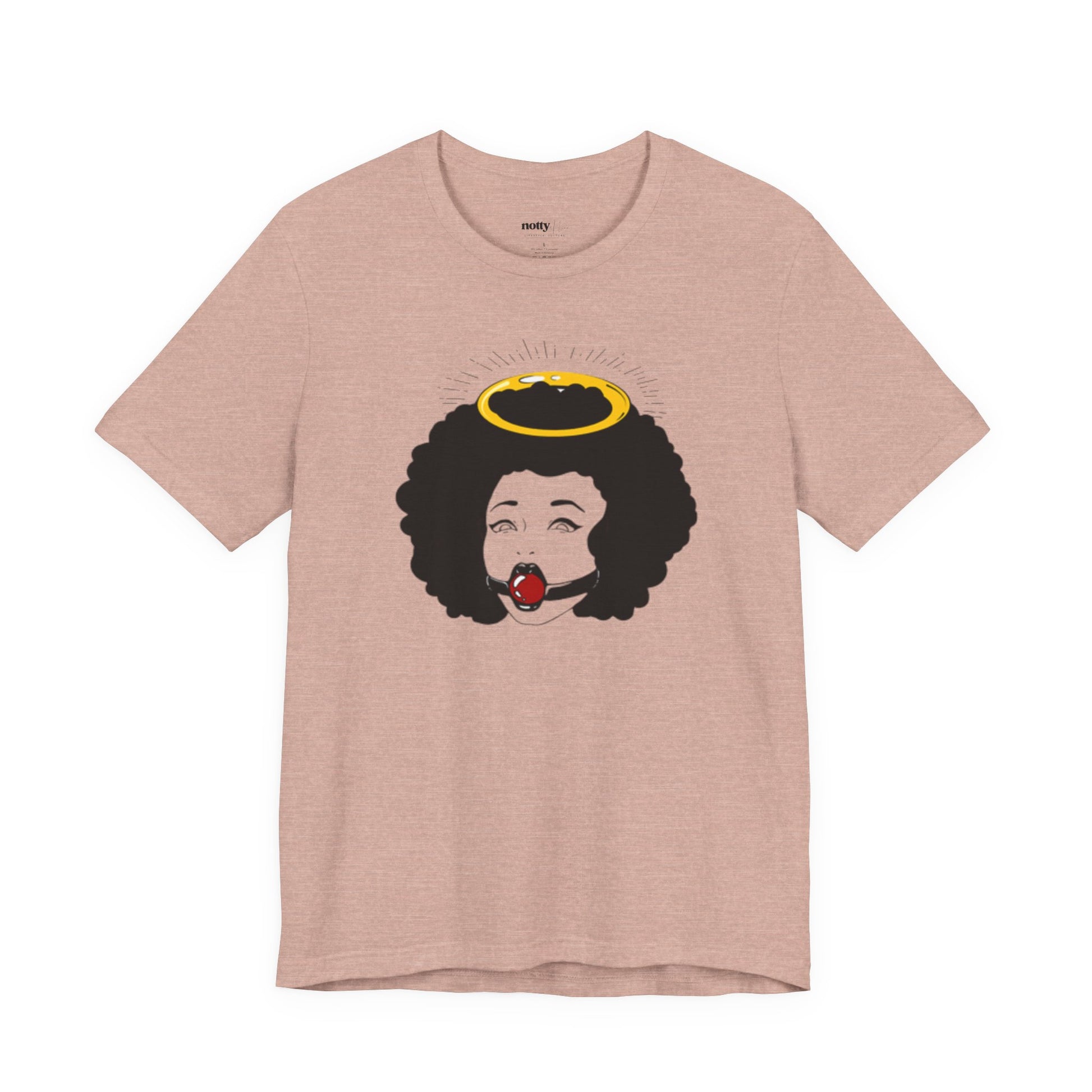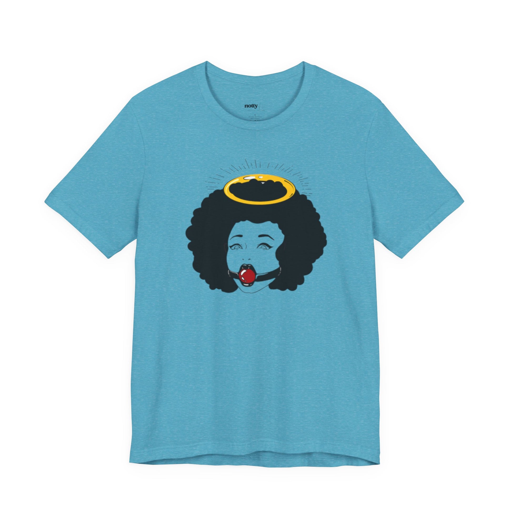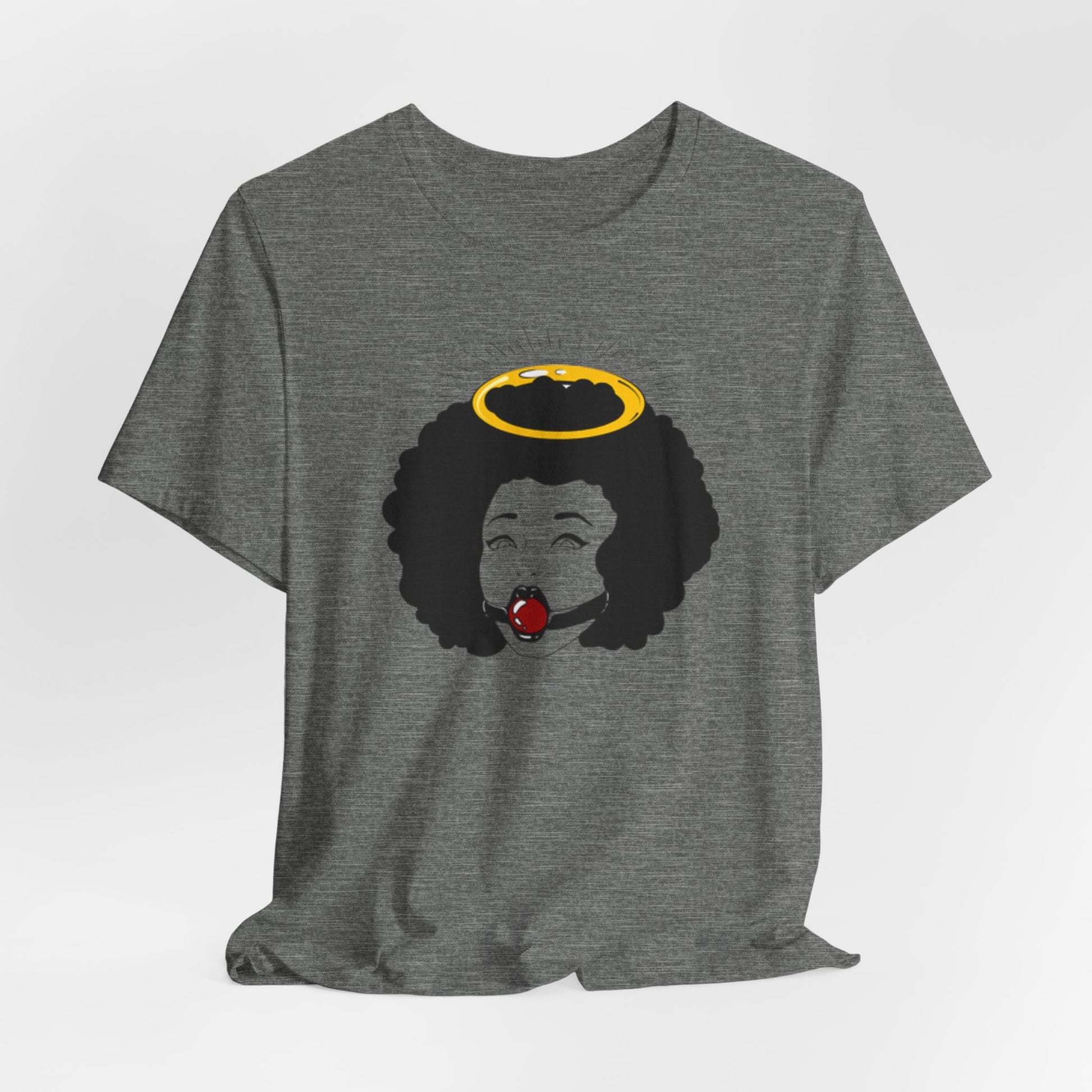 Let your shirt do the talking. The Notty & Nice Halo Tee is bold, playful, and unapologetically Black. Featuring our signature haloed Afro and cheeky ball gag design, this tee is perfect for lifestylers who know how to keep it cute in public and notty in private.