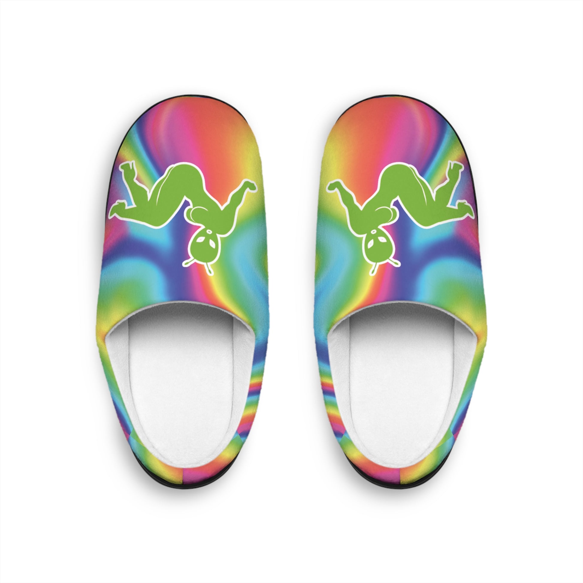 Take your comfort to another galaxy. 👽✨ The Alien Hottie Slippers feature a trippy rainbow swirl background with a bold green alien silhouette—playful, cheeky, and impossible to miss. Perfect for lounging, aftercare, or making your downtime just as out-of-this-world as your style.